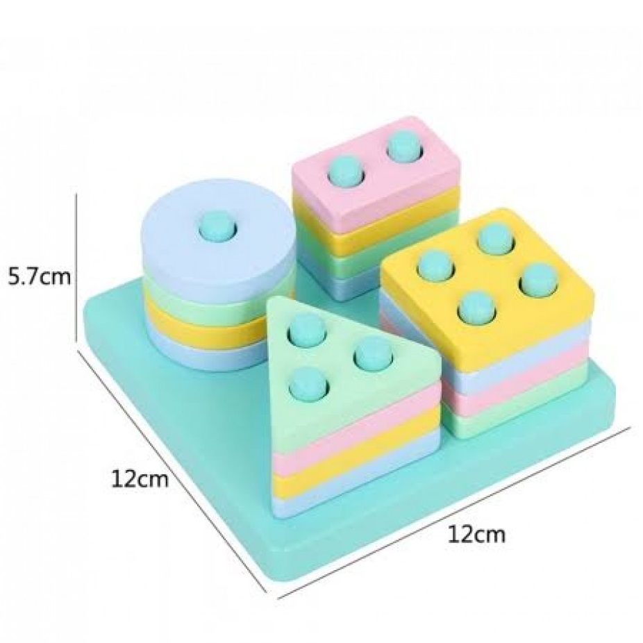 Este lindo brinquedo propõe diversas formas de encaixar e brincar. A criança irá adquirir as primeiras noções de tamanho, cor e forma, além de exercitar a coordenação motora de forma muito divertida