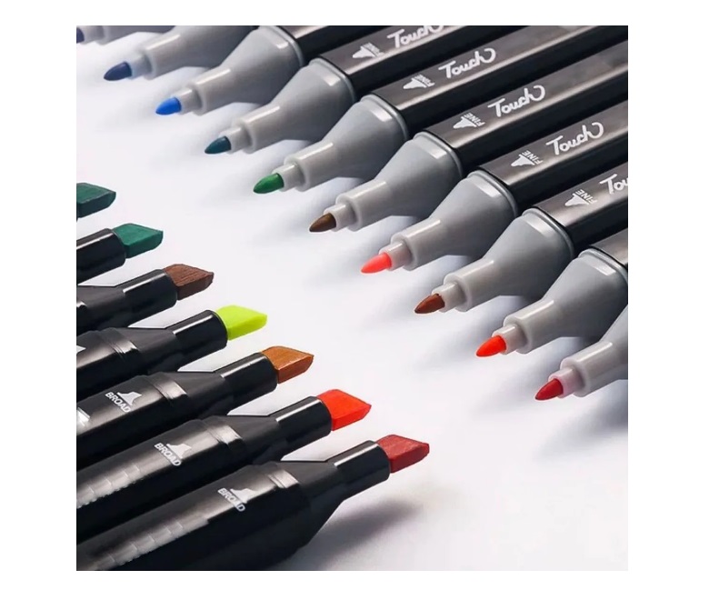 Cada caneta possui duas pontas, uma fina e uma mais grossa, oferecendo versatilidade para seu trabalho artístico. Com um total de 96 pontas, as possibilidades de criação são amplas. Os marcadores são à base de álcool, proporcionando aplicação suave e uniforme, e são livres de odores, adequados para uso até por crianças.