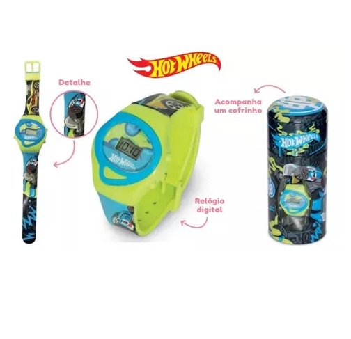 Fique estiloso com o Relógio Infantil Digital Hot Wheels com Cofrinho. Este glamouroso relógio digital acompanha um lindo cofrinho para você guardar dinheiro ou qualquer outro objeto que preferir.
