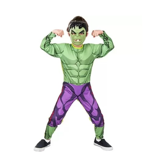 A fantasia Infantil clássica Vingadores do Incrível Hulk é licenciada pela Marvel. Macacão totalmente estampado com detalhes igual ao do personagem Hulk, possui uma pequena abertura com cordões para amarrar que facilitam a vestimenta e ajuste da peça, o tecido da fantasia de super herói é de alta qualidade, não esquenta, não pinica, não desbota, tem cores vivas e secagem rápida. Acompanha máscara.