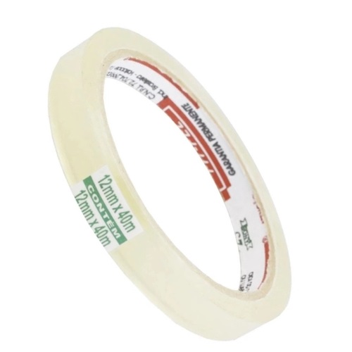 Especificações do Produto: Fita adesiva transparente, medindo 12mm de espessura com 40m de comprimento