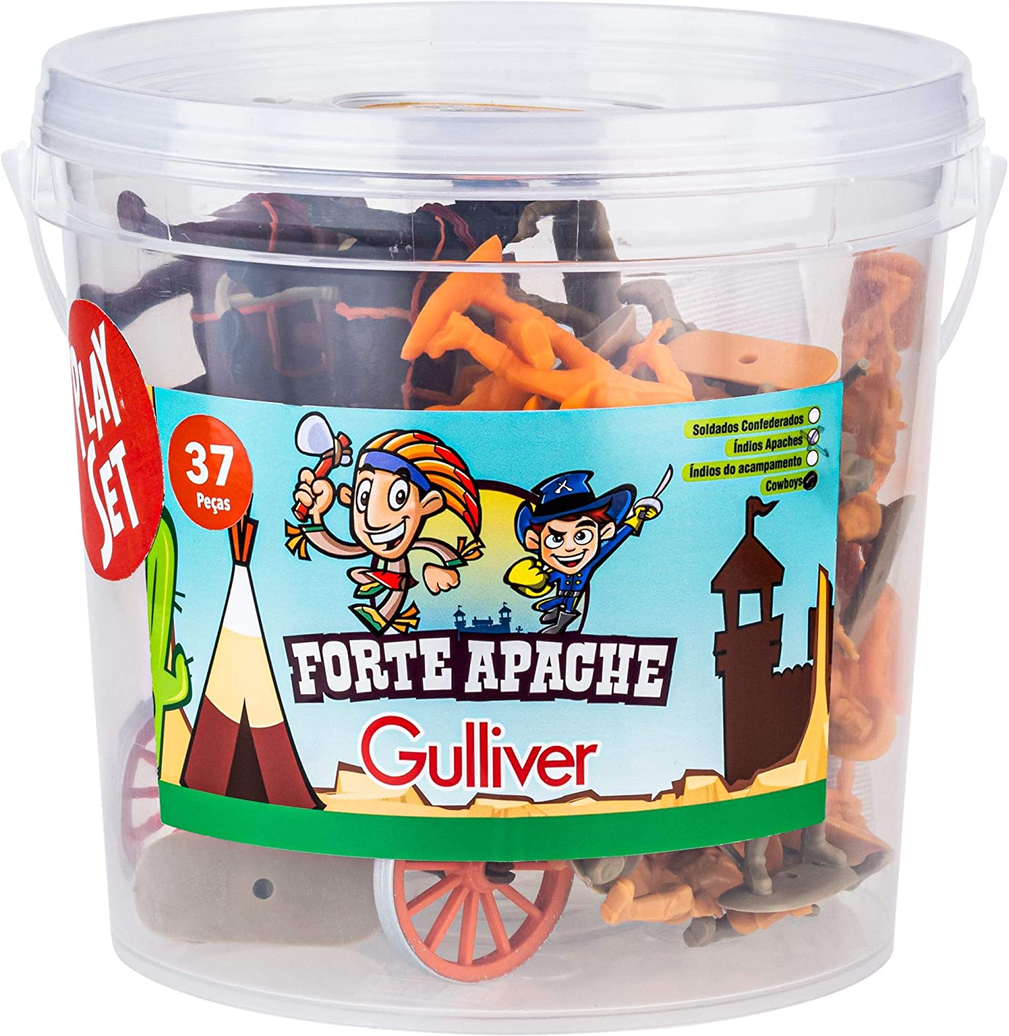 Brinquedo forte apache no balde com 37 peças