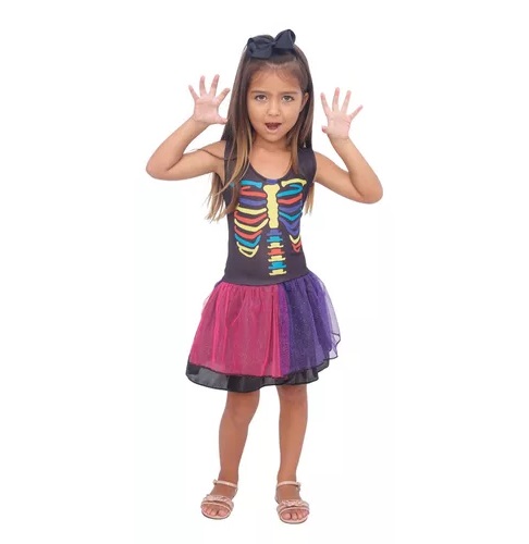 FANTASIA VESTIDO ESQUELETO COLORIDO G