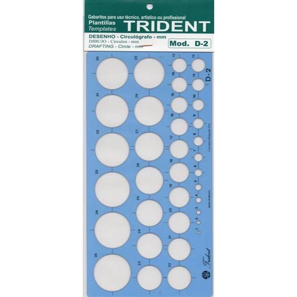 Com 35 círculos, de 1 a 35 mm, com todos os raios para centralização.