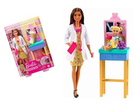 Barbie Profissões Boneca Pediatra Morena Mattel GTN52 - Explore um mundo de diversão das profissões com o playset da pediatra Barbie!