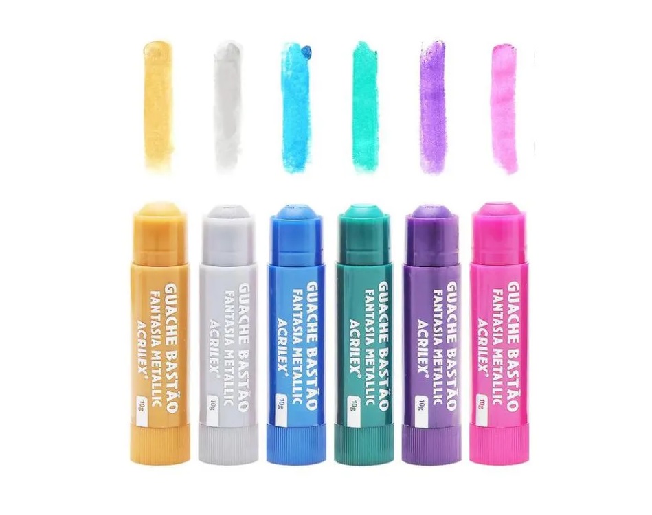 \par Possui 6 bast\'f5es 10g cada com cores met\'e1licas.