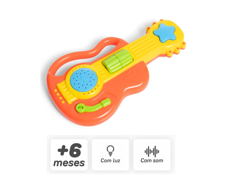 A Guitarra Rock Star contém três melodias diferentes, fazendo as crianças se sentirem como verdadeiras estrelas do palco enquanto tocam suas músicas favoritas. E o chocalho adiciona um toque extra de diversão e ritmo!