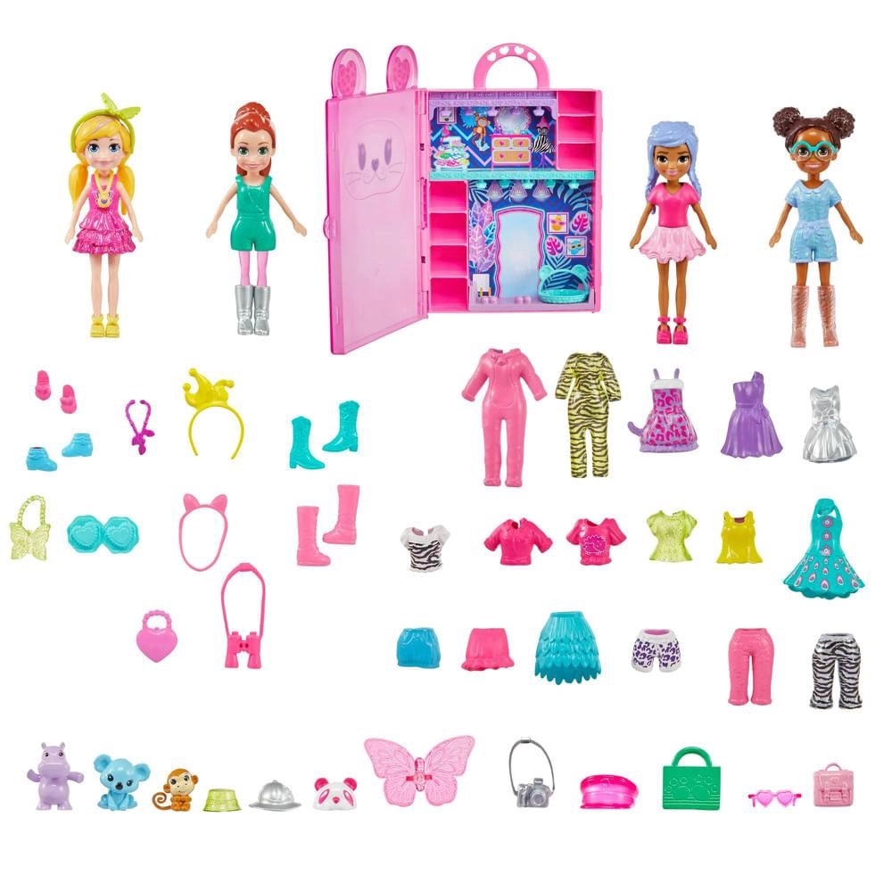 As bonecas e os bichinhos de estimação Polly Pocket™ são apaixonados por moda no conjunto Stylin' Safari Fashion Collection™ com 50 peças para diversão com diferentes combinações!