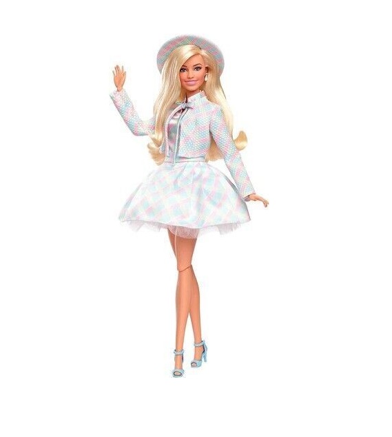 Saudações direto da Barbie Land! Da mesma maneira que Margot Robbie como Barbie em Barbie O Filme, esta boneca colecionável usa um conjunto xadrez impecavelmente coordenado. Retirada diretamente do filme, Barbie usa esse visual ao retornar à Barbie Land, inclusive o chapéu combinando e os saltos pastel! Inspirada em Barbie O Filme, esta Barbie é um ótimo presente para fãs e colecionadores. Suporte de boneca incluído.