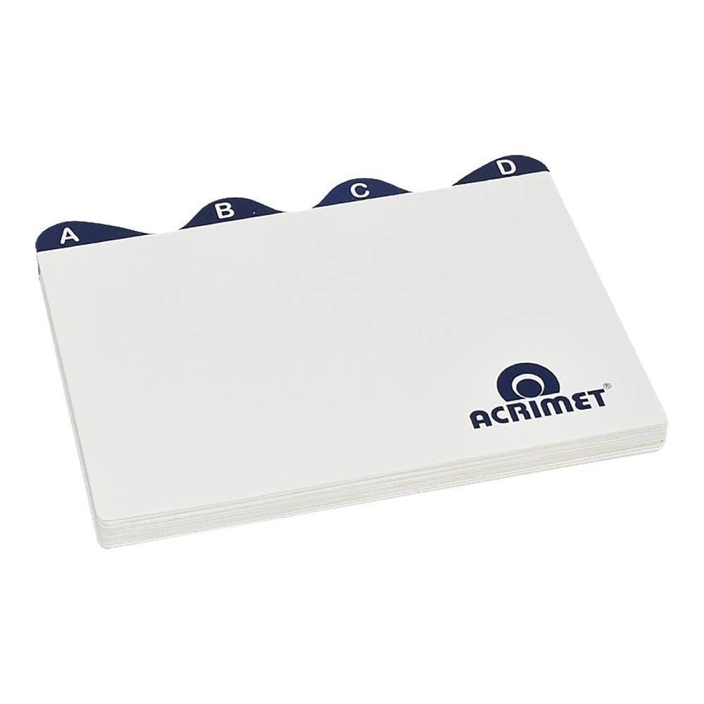 Com o Índice para Fichas 4x6 Acrimet você deixará o seu fichário de mesa mais organizado e sofisticado. Desenvolvido em cartão branco envernizado, ele possui abas de identificação ordenadas de A/Z com impressão em azul, que proporciona facilidade na hora de padronizar suas fichas. Perfeito para usar no escritório!