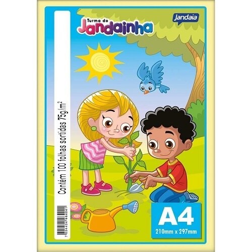 Papel Sulfite A4 75g 100 Folhas Cores Sortidas Jandainha ideal para impressão, trabalhos escolares, desenho, pintura, recorte e colagem.