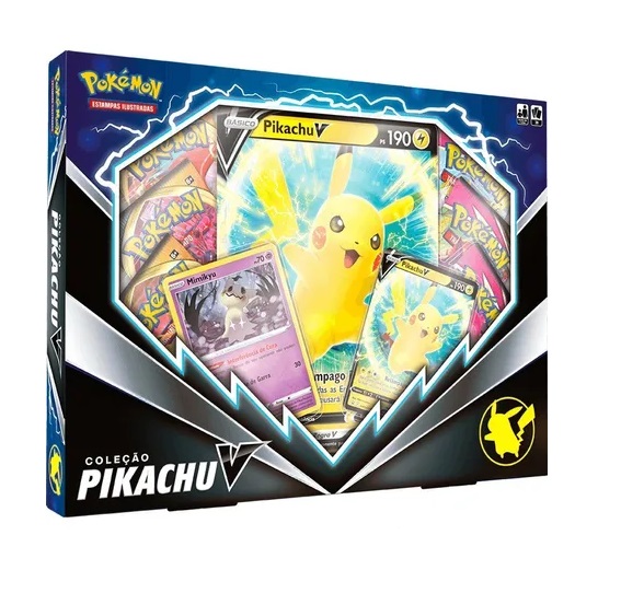 Você também encontrará uma versão extragrande de Pikachu v, além de mais cartas nos pacotes de booster do Pokémon Estampas Ilustradas!