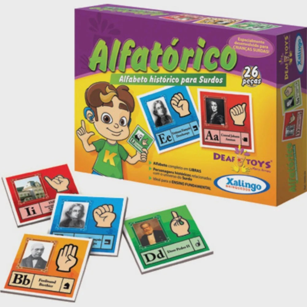 O Alfatórico é um jogo educativo vai porporcionar a alfebetização de surdos além de enriquecer a história de através do conhecimento de personagens ilustres do universo dos deficientes auditivos, praticando a escrita e a datilografia de seus nomes. É importante que as crianças conheçam cada personagem do jogo e sua importância para o povo e a comunidade surda. Cada cartela contém o sinal em Libras da letra inicial do personagem e imagem histórica de cada um.
