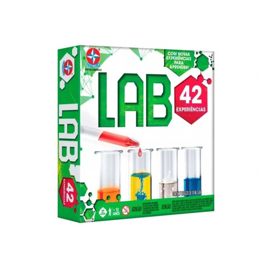 Você poderá ser um cientista de verdade com o Conjunto de Atividades - lab 42 Experiências da Estrela. Reúna seus amigos e explore elementos químicos com esse divertido e educativo kit de Experiências. Observe as reações Químicas, entre as substâncias, descubra se são ácidas ou básicas, veja elas mudando de cor e muito mais! São 42 novas experiências para você se divertir em seu laboratório!