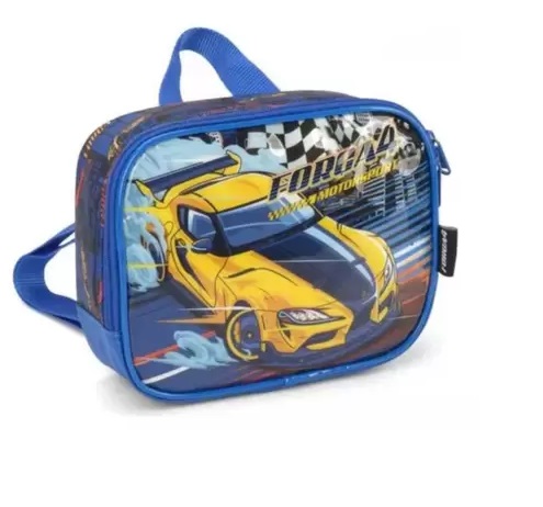 Lancheira infantil Forca 4, composta de poliéster e PVC, possui fechamento em zíper, logo em silk e alças ajustáveis.