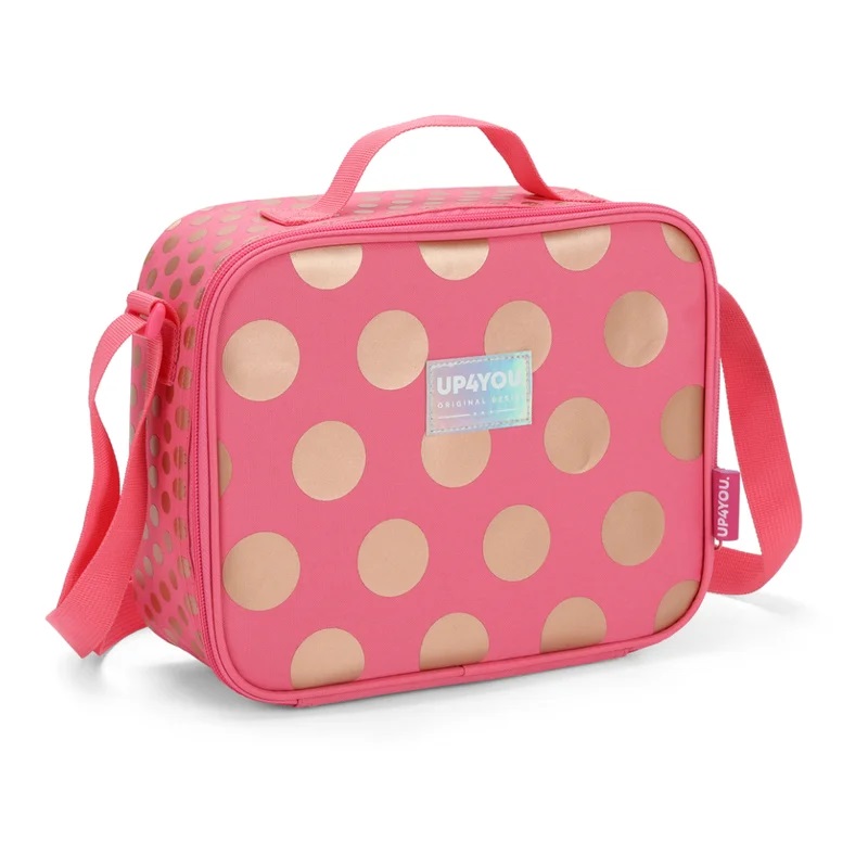 A Lancheira Térmica Tween Circle Feminina da UP4YOU é um acessório charmoso e funcional. Com isolamento térmico, mantém os alimentos frescos. Seu design elegante e discreto, com estampas circulares, proporciona estilo. Possui alça ajustável para transporte confortável e é perfeita para manter a comida organizada na escola ou no trabalho.