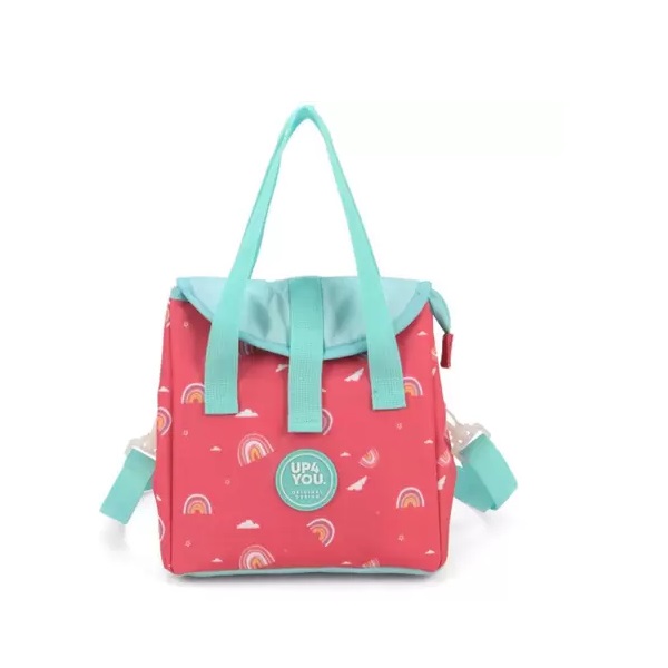 Lancheira Produzida em poliéster com revestimento que ajuda a manter o frescor dos alimentos por mais tempo. Ela possui compartimento com fecho em zíper epuxador personalizado em metal. Alça deombro, facilitando na hora de levar.