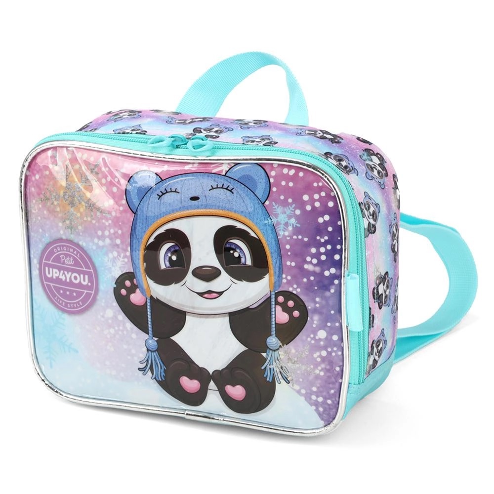 \par Lancheira estampada com al\'e7a de costas e al\'e7a de m\'e3o, al\'e9m de etiquetas personalizadas.