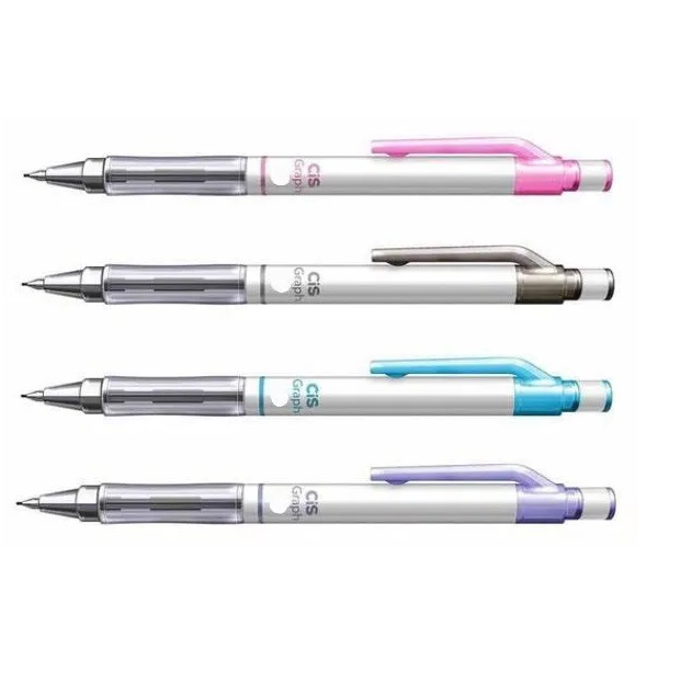 As lapiseiras técnicas Cis Graph tem um design moderno e bonito. Possuem borracha no topo e clip em quatro opções de cores de corpo.