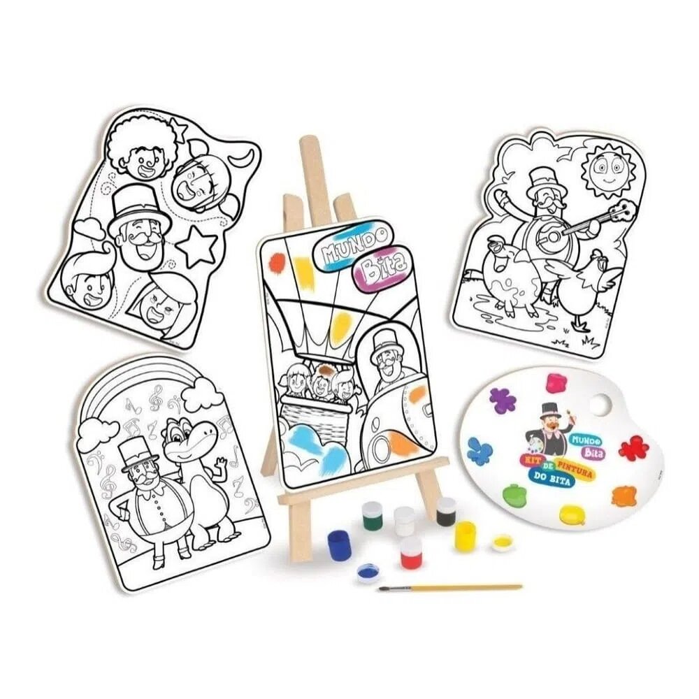 Novo Brinquedo Kit de Pintura do Bita Infantil com cavalete, telas e paleta em madeira da Nig Brinquedos 0694. As cores do arco-íris dançando na ponta de cada pincel. Novo Brinquedo Kit de pintura infantil perfeito para alegrar e encher de cores a criançada. Recomendado para crianças acima de 3 anos de idade. Imagens meramente ilustrativas.