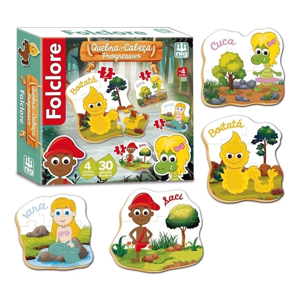 Quebra Cabeça educativo super fofinho com 30 peças em madeira, fácil de montar e resistente. As crianças vão testar sua capacidade de concentração e memória, encaixando as pecinhas que apresentam personagens do folclore brasileiro.