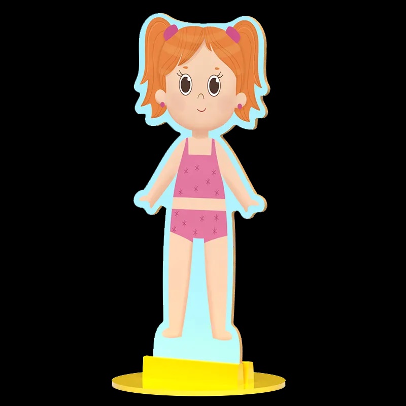 As crianças podem criar diversos looks para a sua boneca magnética, ou também podem seguir as sugestões indicadas nas dez cartelas. Com o guarda-roupa 3D a brincadeira se torna ainda maior, as roupas podem ser guardadas dentro dele.