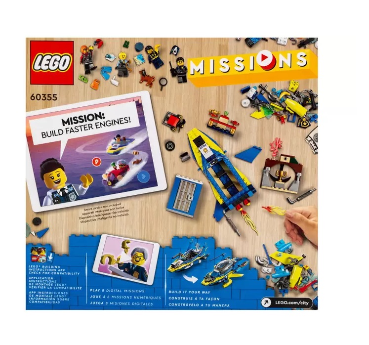O modelo Missões Investigativas da Polícia Aquática, City Missions (60355) tem 278 peças.