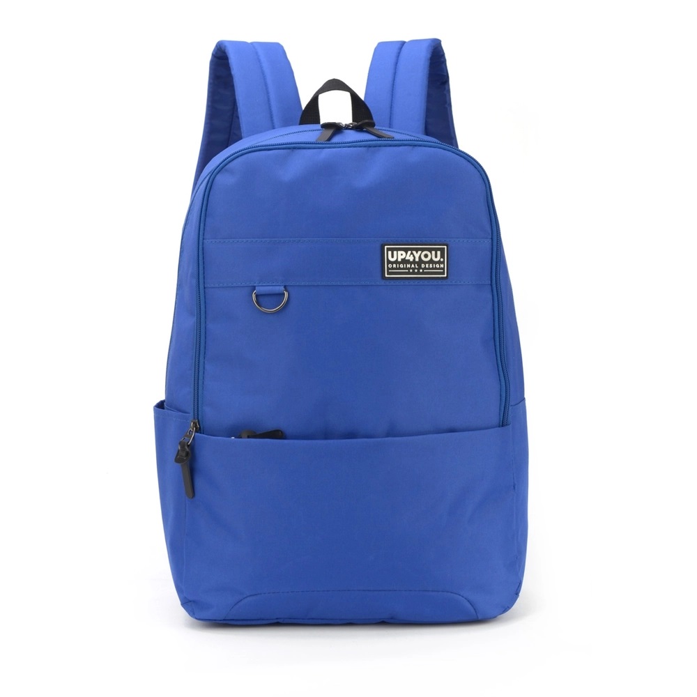 Possui um compartimento e um bolso frontal com fechamento em zíper