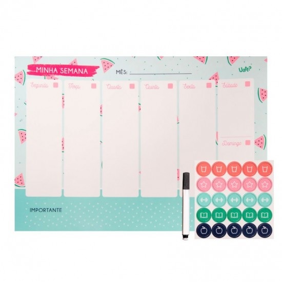 Contém: 1 organizador magnético, 1 cartela com 25 ímãs e 1 marcador.