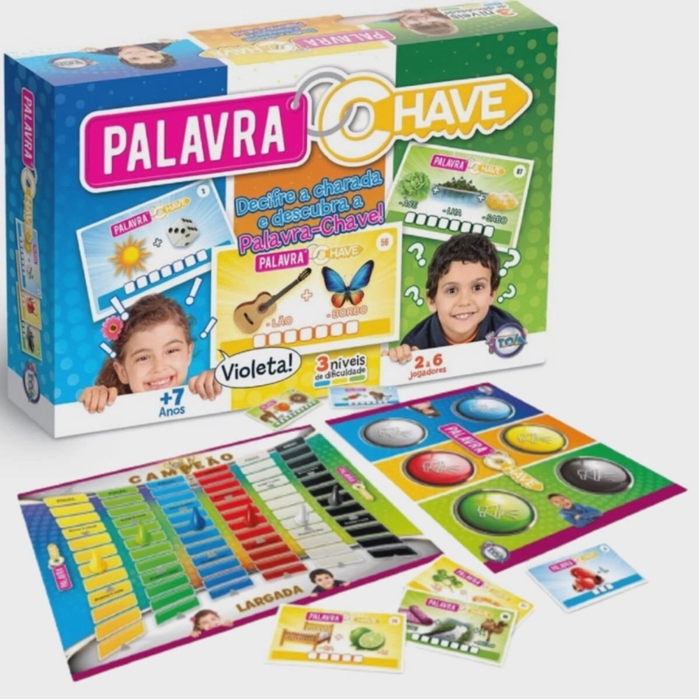 Palavra Chave Decifre a charada e descubra a Palavra-Chave! Identifique a imagem, separe mentalmente as sílabas, some ou retire as letras indicadas e descubra qual palavra está escondida em cada carta! Um jogo para exercitar a mente e divertir os participantes.