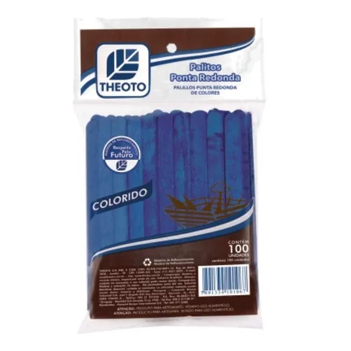 Palito de Sorvete Azul Ponta Redonda c/ 100 Unid Theoto