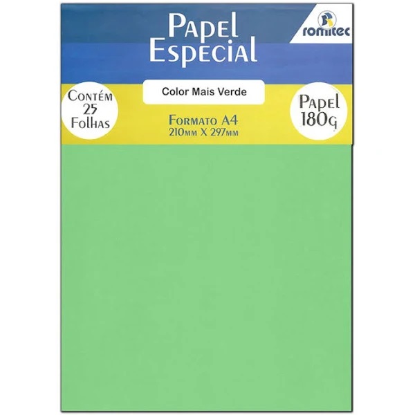 Papel color plus verde a4 210x297mm 180g romitec 25fls.