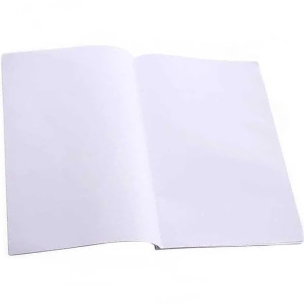 Papel almaço sem pauta, usado para trabalhos escolares.