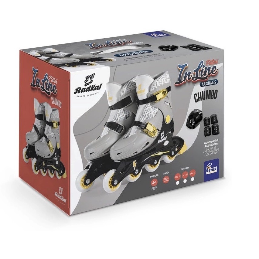 \par - Conte\'fado da Embalagem: 1 Patins Ajust\'e1vel, 1 Kit de prote\'e7\'e3o (capacete, cotoveleiras e joelheiras)
