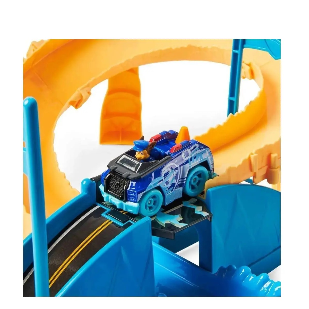 Ajude o Chasena corrida para o resgate. Aperte o lançador para enviar Chase correndo ao redor do circuito de água, apagando as chamas. Reinicie e jogue outra vez, é muito divertido. O Ultimate Police Truck lançador se desconecta da pista para ainda mais opções de resgate. Com rodas de trabalho, carregue seu veículo True Metal para dentro e gire para o resgate. Veículo Chase exclusivo. Imagem meramente ilustrativa.