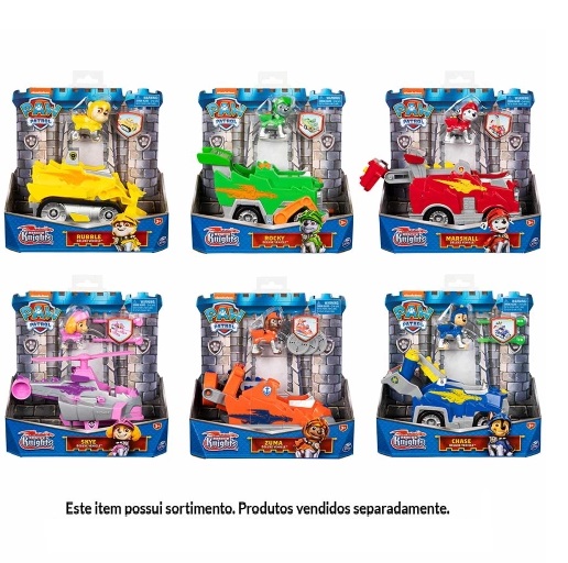 Os veículos são acompanhados de um boneco colecionável vestindo sua armadura Rescue Knights. As crianças podem usar sua imaginação para criar divertidas e emocionantes aventuras ao lado dos cachorrinhos mais famosos e queridos das telinhas