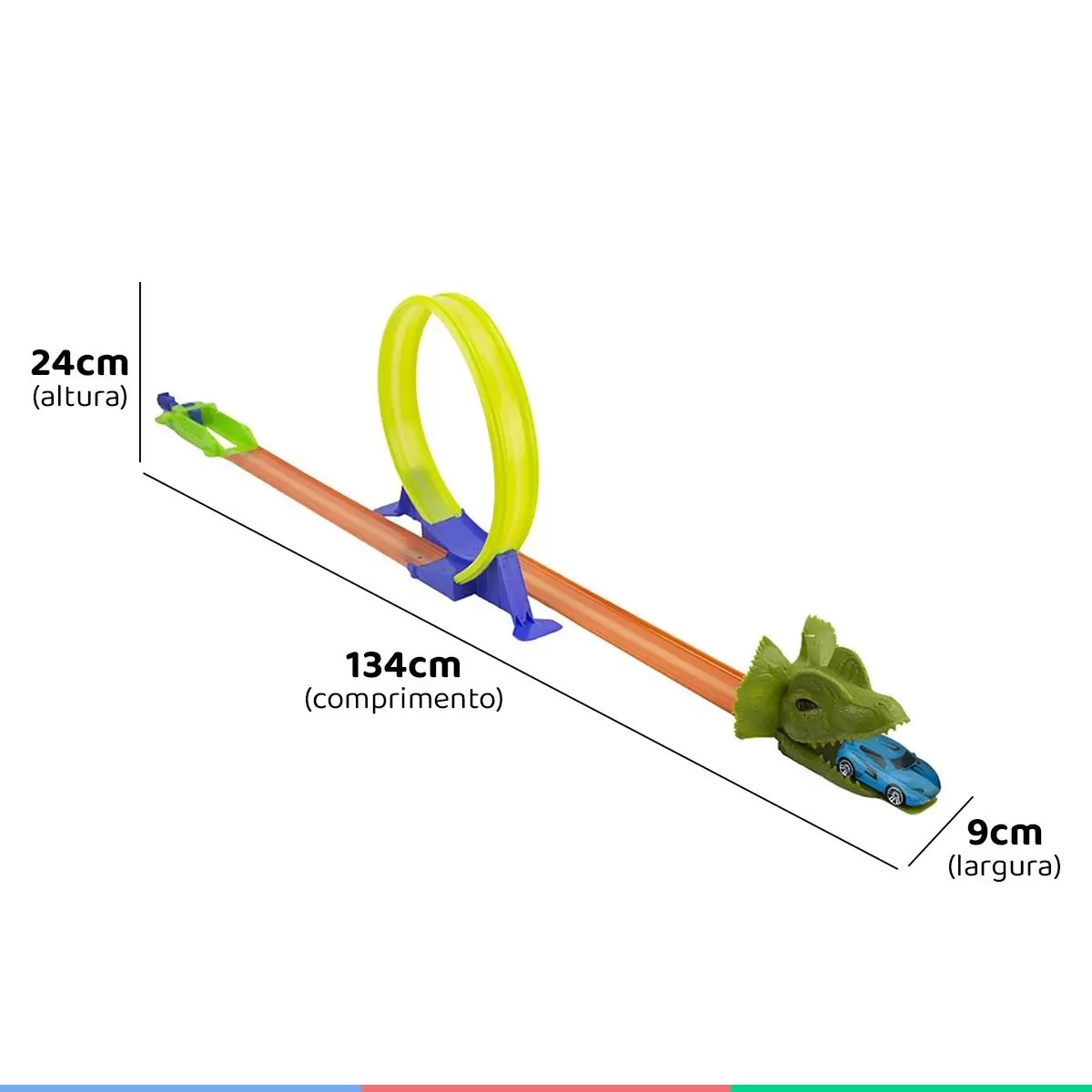 - Medidas Aproximadas da Pista (AxLxC): 24x9x134 cm