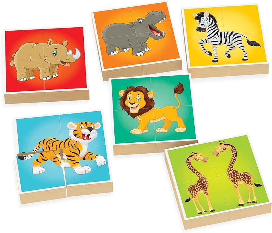 Quebra-cabeça em Blocos da Junges em madeira de reflorestamento (MDF) e com tinta atóxica, as peças são impressas direto na madeira e possuem espessura maior para facilitar a montagem. Jogo com 24 peças que formam 6 cenas com 4 peças cada.
