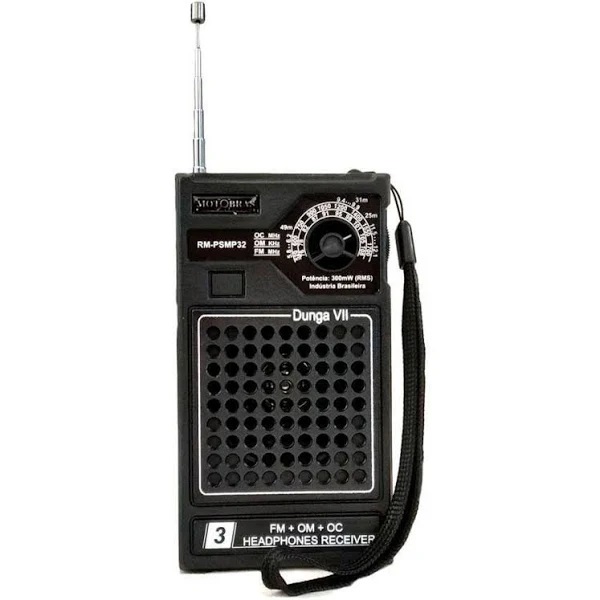 O Rádio Portátil Motobras RM-PSMP32 é um receptor digital, sintonia mecânica, microprocessado, com ótima sensibilidade e controle automático de frequência (AFC) para maior estabilidade na recepção. Possui Antena Telescopica para uma melhor condição de recepção.