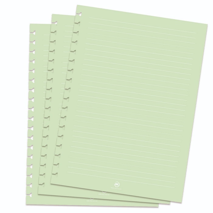 O Refil de Folhas para Caderno SMART Colegial possui 48 folhas destacáveis na cor verde com linhas pautadas branco e gramatura 90g/m², ou seja, folhas mais grossas ideais para lettering, títulos… para não transferir a tinta da caneta para o outro lado da folha.