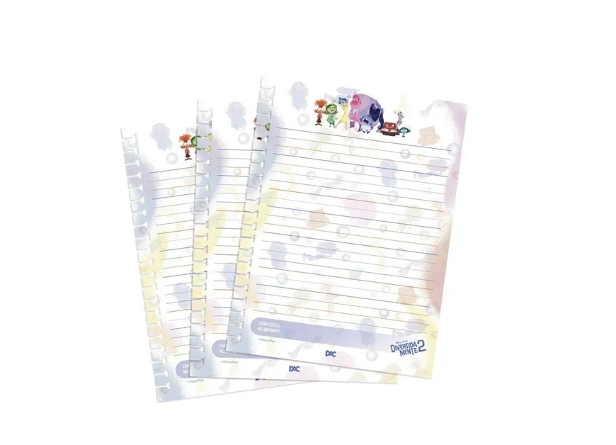 Com folhas em linhas brancas que ajudam na hora da escrita.