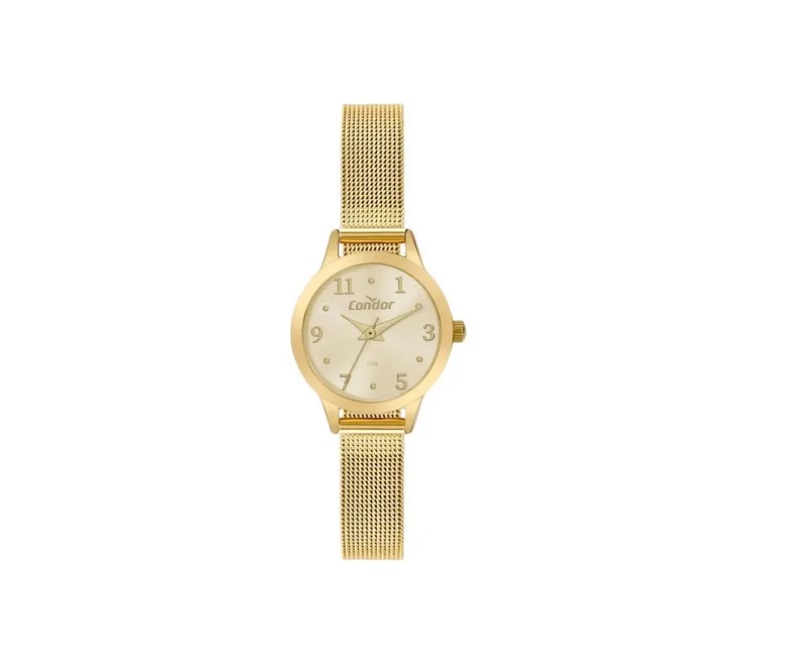 A coleção querida da Condor chega com mais variedade! Dessa vez, relógios com mostrador de fácil leitura e com textura. Sua pulseira em mesh e seu banho dourado com mostrador dourado.