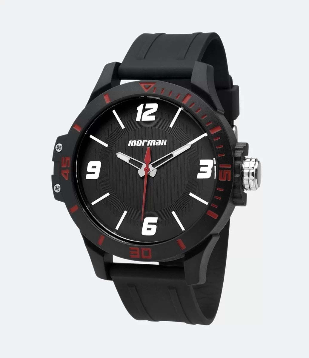 O relógio mormaii masculino silicone preto MOPC21JAO/8R tem nível de resistência à água especificado em 10 ATM.