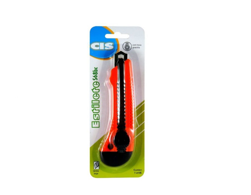 Estilete Metal Largo S68BC Com Trava Giratória Cis, perfeito para abertura de caixas e envelopes.