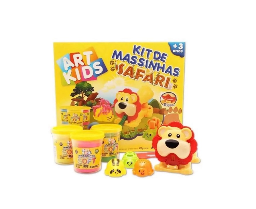 O kit massinha Safari da Acrilex é superdivertida e você pode levar para onde quiser. Embarque nesse safari e solte sua imaginação brincando com os animais.