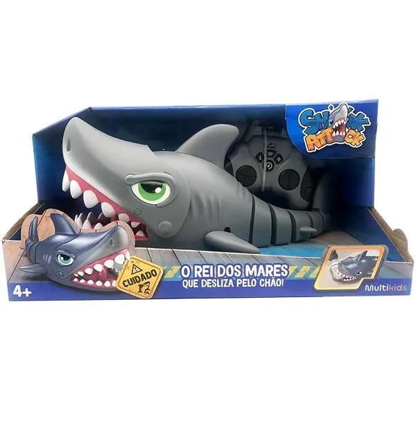 O Shark Attack transforma qualquer piso em águas infestadas de tubarões!Prepare-se para uma brincadeira cheia de emoção com o incrível Tubarão de Controle Remoto Shark Attack da Multikids!