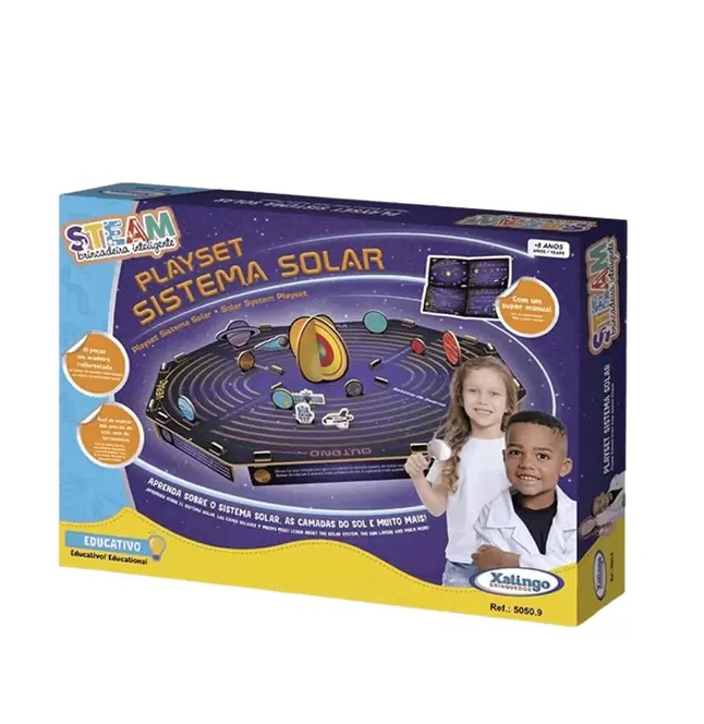 \par Com o Playset Steam Sistema Solar, um jogo tridimensional em MDF que as crian\'e7as aprendem brincando atrav\'e9s dos dados sobre o sistema solar e seus planetas, dist\'e2ncia, composi\'e7\'e3o etc.