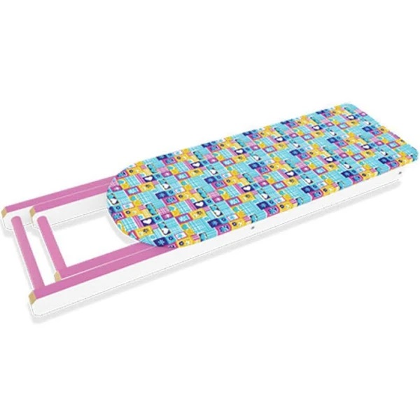 Tábua de Passar - Fashion Girl da Junges em madeira de mdf. Produto abre e fecha com trava metálica e tampo decorado com tecido removível para limpeza!