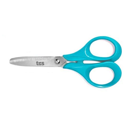 A tesoura Class já é um clássico TRIS: lâminas de 1,5mm de espessura com pontas arredondadas e cabo ABS de alto brilho, é uma tesoura de aço inox escolar de 13cm de comprimento.