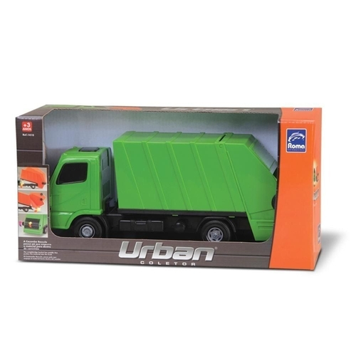 Super caminhão Urban Coletor, a caçamba bascula possui pá que empurra o material para dentro do caminhão.